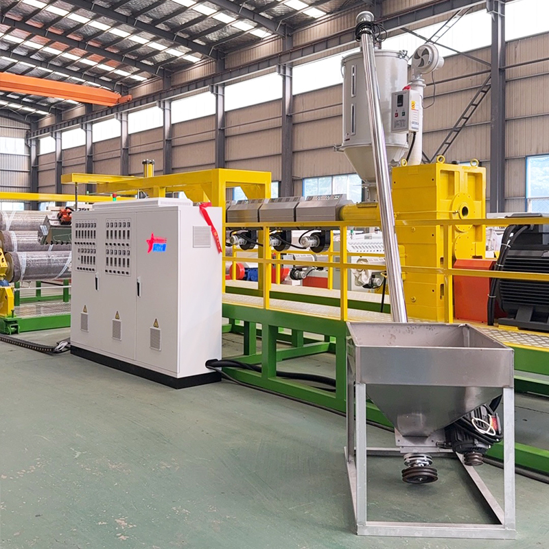 Considere os componentes do equipamento:Extrusora de folha PP eequipamentoconsiste principalmente em uma unidade principal, trocador de tela, matriz, calandra de três rolos, mesa transportadora, transporte e cortador ou bobinador.