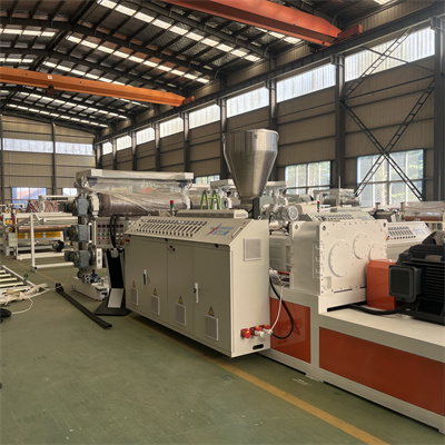 A matéria-prima misturada entra em nossa extrusora de rosca dupla através de um alimentador de rosca. Sob a ação de aquecimento do parafuso, o plástico derrete. O PVC derretido passa por uma matriz em T para formar uma folha em branco.