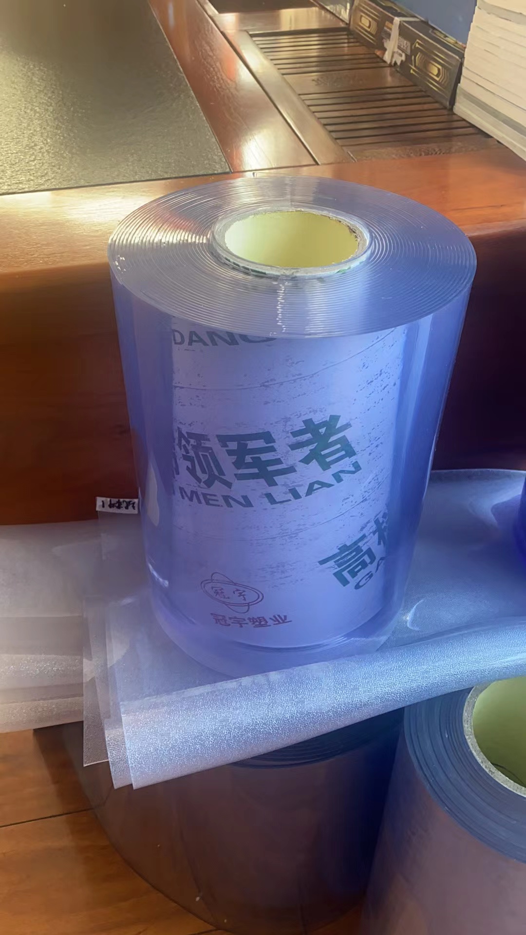 Equipamento de cortina de porta macia de PVC, a superfície não é lisa e tem picada/partículas durante a produção.