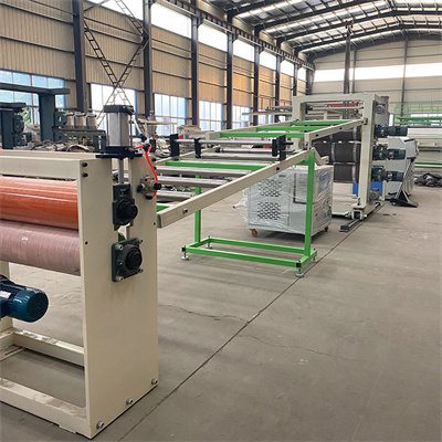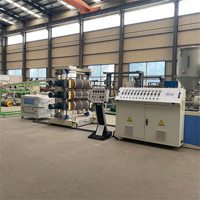 As partículas secas de PS são transportadas para a tremonha da extrusora através de um dispositivo de alimentação automático. A rosca da extrusora derrete gradualmente as partículas sólidas de PS em uma massa fundida uniforme por meio de rotação e aquecimento externo. O fundido é empurrado para a matriz T (canal de fluxo plano) para determinar preliminarmente a largura da folha. O filme fundido entra na calandra de três rolos e é rapidamente solidificado e formado. A chapa moldada é puxada a uma velocidade uniforme pela máquina de tração e as rebarbas são removidas pela máquina de corte. Finalmente, ele é enrolado em uma bobina normal pela bobinadeira.